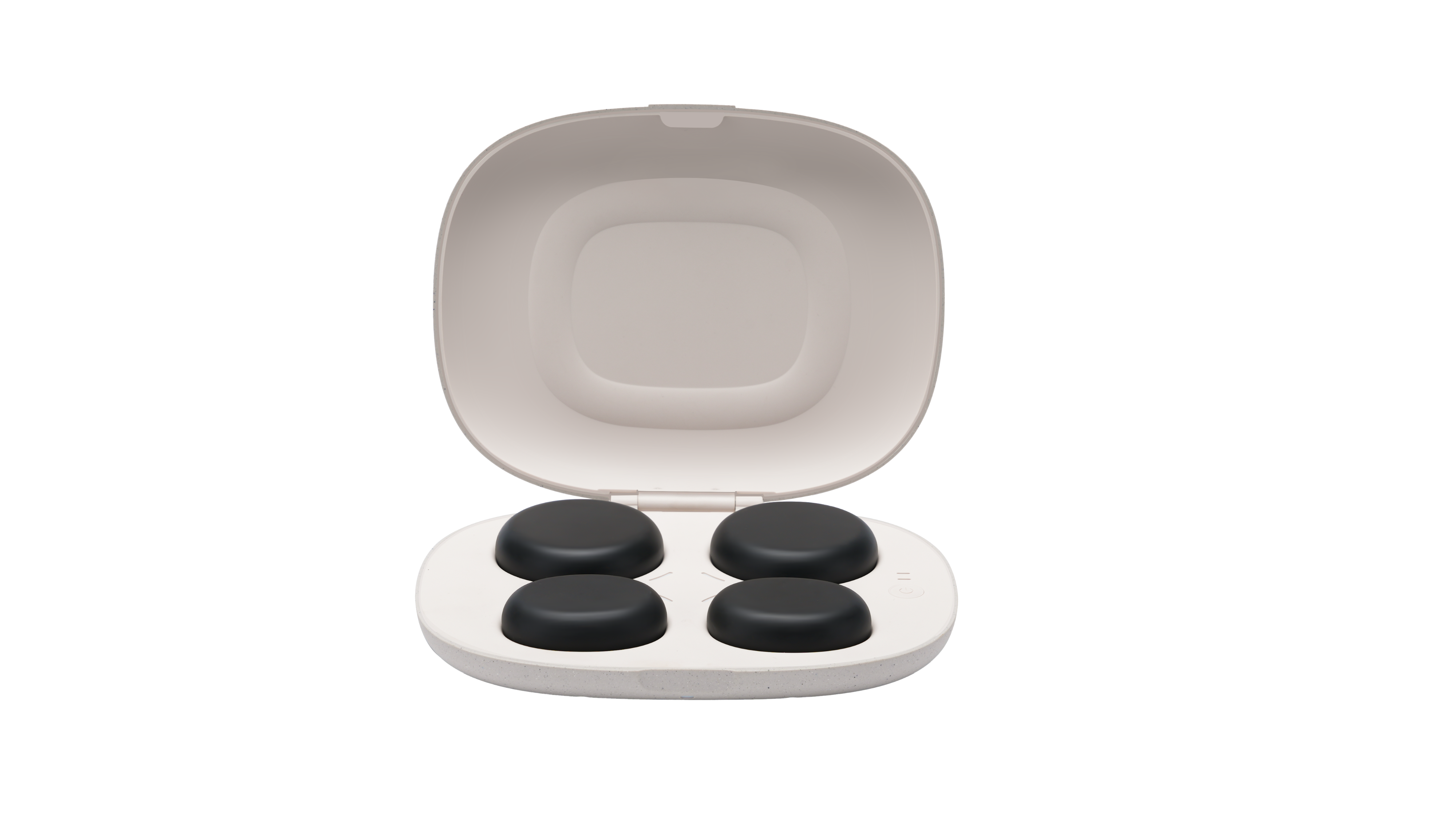 The 4 basalt stones (2 round, 2 oval) are heated easily on the heating tablet – completely water-free, quick, and hygienic.